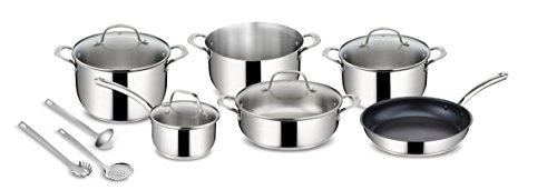 Avec ce lot de 13 ustensiles, vous pourrez cuisiner toutes sortes de recettes. Vous avez à disposition 4 marmites de volumes différents, une poêle, une petite casserole pour préparer des bouillons, ainsi qu’une louche, une cuillère pour pâtes et une dernière pour les crêpes et les omelettes. La plupart des ustensiles sont fournis avec des couvercles et poignées pour un maximum de sécurité. Le tout en acier inoxydable procure de nombreux avantage côté cuisson et apparence. Les ustensiles se nettoient en quelques coups d’éponge imbibée de liquide-vaisselle et passent même au lave-vaisselle. Le matériau agrémente le décor et reflète l’hygiène de la cuisine et de son tenant. Les couvercles en verre sont tout aussi aisés à entretenir.