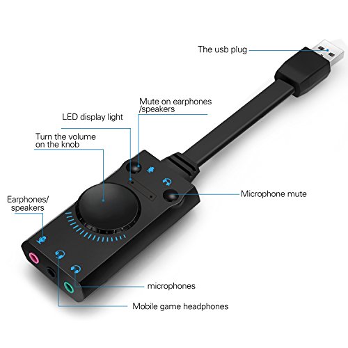 Notez qu’aucun adaptateur n’est requis pour les casques, qu’ils soient à simple ou double prise.  Le câble en textile de l’appareil présente l’avantage d’être très flexible, permettant ainsi de placer la carte n’importe où à côté d’un ordinateur. Muni de deux ports USB, ce modèle de carte son peut également vous servir à étendre le nombre de vos ports USB. Vous pouvez en avoir besoin pour connecter différents dispositifs, tels qu’un disque dur, une souris ou encore un lecteur carte.
