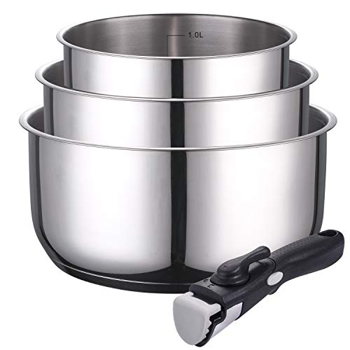 Ce lot de casseroles de la marque Herzberg peut accueillir tous les types de préparations. Ce produit vous accompagnera pendant plusieurs années. Le lot comprend une dizaine de pièces, dont 4 casseroles et deux poêles de tailles différentes. Le set complet ne prend pas de place puisque les éléments sont empilables. Une poignée amovible ainsi que trois couvercles accompagnent le lot.