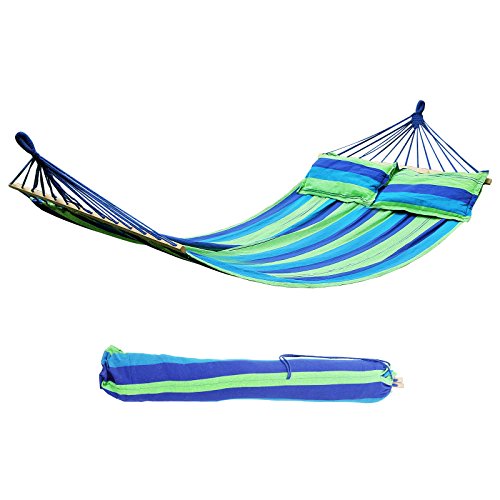 Avec 185 cm de longueur et 125 cm de largeur, elle dispose d’un grand espace de détente pour accueillir jusqu’à deux personnes. Toutefois, pour des raisons de sécurité, il est recommandé de respecter une charge maximale de 150 kg. Elle est munie d’une barre en bois massif et d’un élément métallique pivotant qui permet de l’accrocher facilement. Le tissu en coton et en polyester est ultra confortable et facile à entretenir. Vous pouvez le laver à la machine.