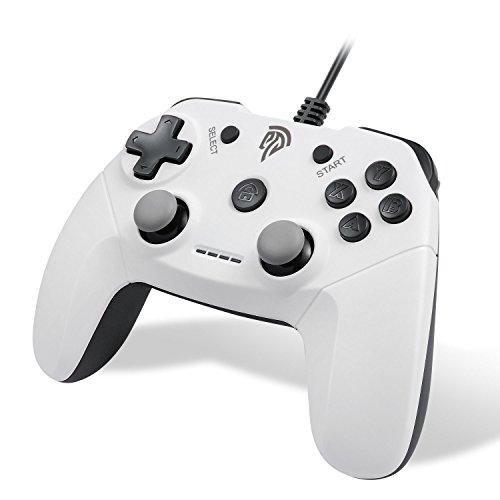 À première vue, ce modèle de manette PC filaire a tout pour plaire. Son design a été spécialement conçu pour s’adapter aux mains du joueur. La position des boutons a été soigneusement étudiée pour que l’utilisateur puisse prendre le maximum de plaisir au cours du jeu. Vous disposez de six boutons d’action et de signaux analogiques L-trigger et R-trigger. Pour un maximum de confort, les boutons sensibles et les bâtons ont été conçus avec un antidérapant.