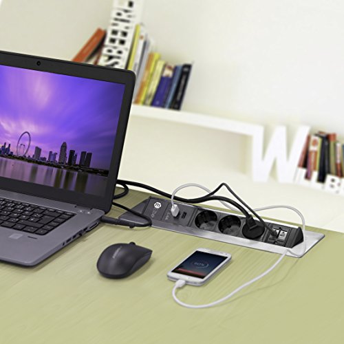 Cette multiprise encastrée s’installera dans votre cuisine, sur votre plan de travail ou bien dans votre lieu professionnel, dont la salle de réunion ou le bureau. Elle est fournie avec un câble de 1,5 m ainsi qu’une partie en acier et une autre en plastique. Son rangement est facilité par son système escamotable qui vous fait gagner d’espace.