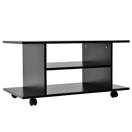 Cette table à roulettes noire comprend deux espaces de rangement qui pourront à la fois contenir une console de jeu et un lecteur DVD tout en laissant encore un peu de place pour les DVD et les télécommandes lorsqu’elles ne sont pas utilisées.