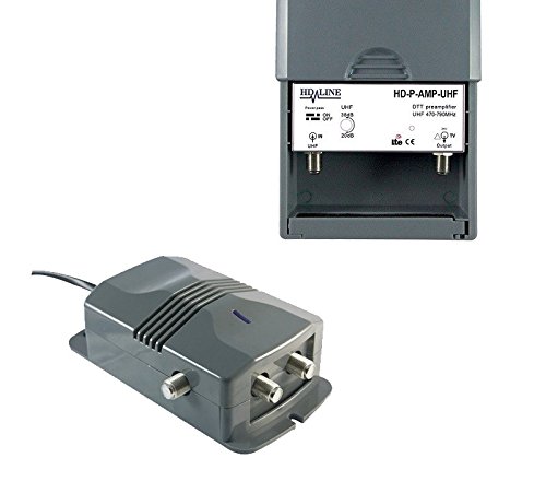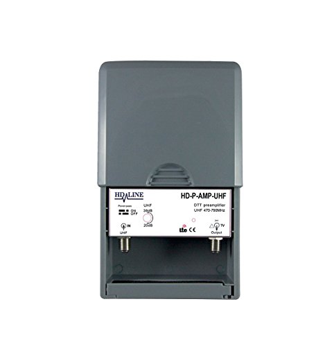 HD-Line HD-P-AMP-UHF est un préamplificateur terrestre pas cher et avec un gain sonore de 38 dB. Il aura sa place tout près du mat tout en assurant un gain en qualité de signal. Il constitue donc la solution à un problème d’accès à des chaînes terrestres. Il résout également les problèmes d’affichage et facilite la tâche en matière de recherche de chaînes. Doté d’un capot spécial, il peut être utilisé aussi bien à l’intérieur qu’à l’extérieur.