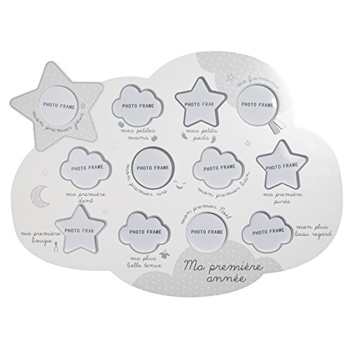 Ma première année céleste est un magnifique cadre qui dispose d’une taille de 40 cm x 53 cm. Il peut accueillir 12 photos et trouvera facilement sa place sur une partie des murs de la chambre de votre bébé. Réalisé à partir d’un matériau robuste et solide, il garantit une longue durée de vie.