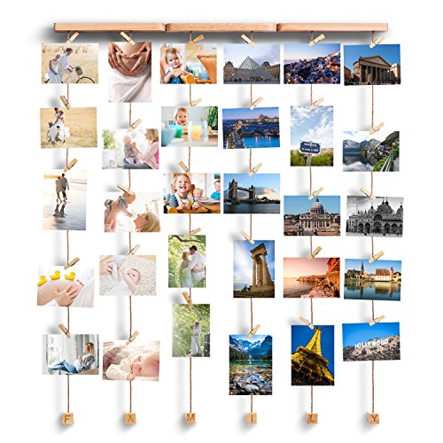 Le système de fixation à pinces est pratique, car vous pourrez changer les photos à souhait sans devoir faire beaucoup de manipulations. La longueur des cordes est réglable en fonction de vos besoins, si vous manquez un peu de place, vous pourrez toujours faire quelques ajustements. Vous pouvez aussi l’utiliser pour accrocher d’autres choses, comme des cartes postales ou des petites œuvres d’art, laissez libre cours à votre imagination.