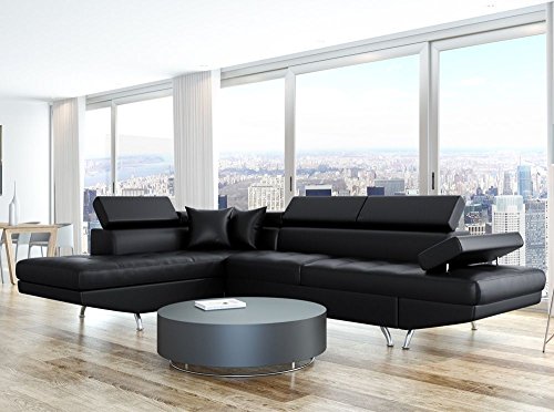 Ce grand canapé d’angle est fait pour les grands salons. Il mesure 295 cm x 205 cm x 75 cm en mode normal, mais lorsqu’il est transformé en lit, il offre 2 places spacieuses pour un sommeil réparateur. Son revêtement est en cuir pour un effet visuel efficace et classe dans une pièce à la décoration contemporaine.