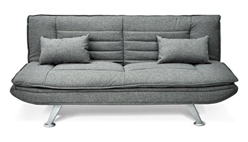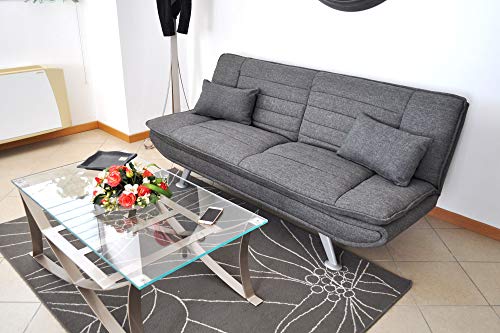 C’est un canapé-lit 3 places en tissu gris et qui trouvera aisément sa place dans votre séjour. Ses dimensions sont de 183 cm x 105 cm, avec une assise de 50 cm et une épaisseur de dossier de 45 cm, autant dire que le confort sera au rendez-vous. Cependant, avant de l’installer, il faudra vérifier la taille de l’espace qu’il va occuper, il vaut mieux prendre une petite marge (183 cm x 88 cm x 82 cm).