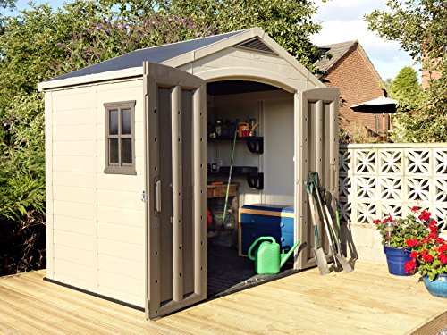 D’une dimension de 257 cm x 182 cm x 243 cm, ce chalet vous offrira toute la place qu’il vous faudra pour ranger vos affaires et votre bois de chauffage. Il a été fabriqué en résine et adopte un design bien soigné.