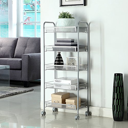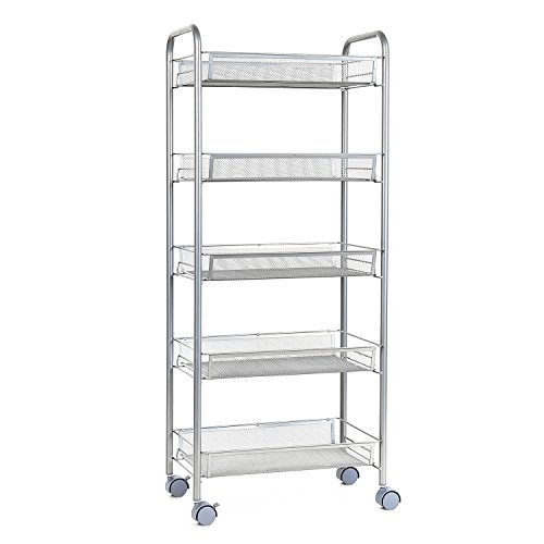 Un équipement d’aide précieux à la mobilité de son utilisateur, un chariot de cuisine constitue à la fois un support de rangement et de déplacement de différents ustensiles ou des nourritures. Cet accessoire étant disponible sous des designs très variés et pouvant offrir plusieurs fonctionnalités, il est important de vous informer sur celui-ci avant d’en acheter un pour éviter de vous perdre dans son choix. Insistez surtout sur sa praticité, sa taille et son matériau constitutif. Un guide d’achat et un classement de quelques articles sont mis à votre disposition pour vous aider à faire votre sélection. Mais si vous ne pouvez pas les lire, alors voici nos meilleurs modèles. Homfa 5 etages est constitué d’acier carboné. Il comporte 5 étagères et il s’accompagne de 4 roulettes de 360 °. Songmics KFR04W est facile à monter grâce au système d’enfoncement dont il est pourvu et il est muni de 4 étagères différentes.