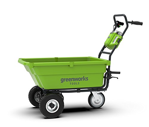 Cet article est doté de roues pneumatiques de 14 centimètres de diamètre le rendant bien fonctionnel. Elles facilitent son déplacement, mais également le transport des charges. Ce matériel vous assure une grande stabilité d’usage. Ces roues maintiennent le chariot bien en équilibre. Ainsi, le risque de renversement est amoindri. Vous pourrez le conduire sur un terrain accidenté sans craindre une quelconque crevaison. Grâce à la robustesse et à la solidité des roues, son utilisation ne nécessite pas de levage. Ce chariot de jardin de marque Greenworks Tools est un modèle très facile à manœuvrer.