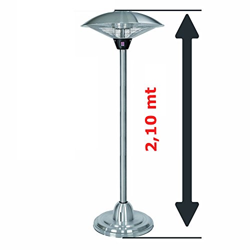 Ce modèle est efficace, robuste et très élégant, son style « parasol » ne passe pas inaperçu, un détail qui le fera prendre place parmi les éléments décoratifs de votre maison. Il possède trois réglages : 650 W, 1350 W et 2000 W. Bien entendu, il n’y a pas de règles strictes quant à l’utilisation de ceux-ci, tout dépendra de votre recherche de confort personnel et de celui de vos invités. Vous pourrez aussi régler sa hauteur en fonction de l’espace dont vous disposez et de vos besoins. Il peut chauffer un espace de 15 m2 et il peut être incliné à 45 degrés pour une efficacité encore plus accrue.