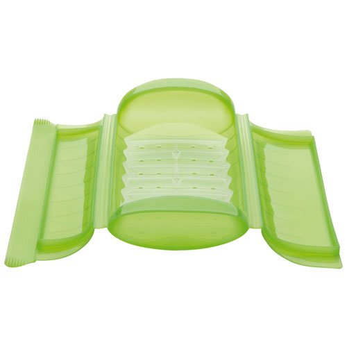Avec ce type d’accessoire, vous pourrez reprendre goût aux délices de la nourriture saine. La cuisson à la vapeur permet de garder toutes les vitamines et les saveurs de chaque ingrédient avec pour avantage de ne contenir que très peu de matière grasse. Le kit comprend deux papillotes, deux lames (de 4 mm pour des coupes en julienne et en ruban), un livre de recettes et un taille-légumes. Pour que vous puissiez avoir une bonne agrippe, les poignées sont rigides, contrairement à l’ensemble qui est assez souple.