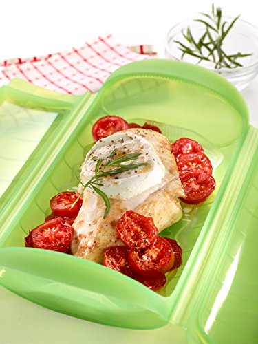 Il est équipé d’un filtre, le jus de l’aliment à cuisiner sera égoutté à travers celui-ci durant la décongélation ou la cuisson, une idée qui offrira un meilleur goût à vos plats et un équilibre plus prononcé. Ce coffret peut aussi bien être utilisé pour cuire du poisson, des légumes ou de la viande. Il peut passer au micro-onde ou au four traditionnel jusqu’à 220 degrés et peut passer au congélateur à – 60 degrés. Une fois que vous aurez terminé de manger, vous pourrez passer au lavage. C’est un processus qui est rendu facile par la possibilité de mettre l’accessoire au lave-vaisselle.