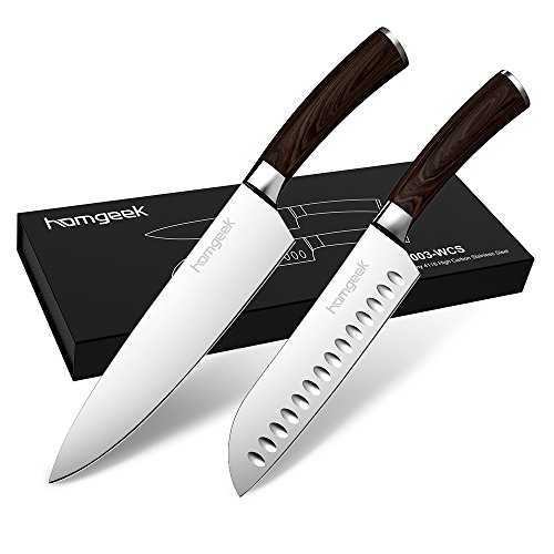 Il est plus facile d’identifier comment choisir les meilleurs couteaux santoku de 2025, si vous êtes bien informé sur le type de produit qui vous convient. Ce modèle est mis à la disposition du grand public sous forme d’un lot de deux articles. Le premier est un couteau de chef de 20 cm de long et le second un couteau santoku de 18 cm. L’achat d’un set pareil permet de faire une bonne affaire, car il vous conduit à des ustensiles multifonctions pouvant traiter la viande, les fruits et les légumes.