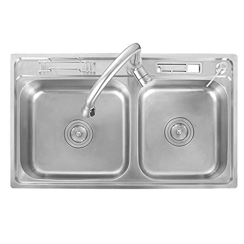 Fait entièrement en acier inoxydable, ce modèle évitera la formation des bactéries et des mauvaises odeurs. Cela est rendu possible grâce à la technologie SUS sans plomb 304. En plus de cela, sachez que sa surface bénéficie d’un dispositif anti-rayure et anti-graisse. Étant un évier en inox avec 2 bacs, celui de gauche mesure 390 mm de long et 360 mm de large tandis que celui de droite est long de 320 mm et large de 360 mm. Tout cela pour une profondeur de 210 mm et une épaisseur de 1 mm. De par ses dimensions, cet évier est le plus performant du marché. Moderne, ce modèle bénéficie d’une finition brossée. Du coup, il s’adaptera à tous les styles de cuisines. Concernant son installation, ce procédé est simplifié par son design prédécoupé.