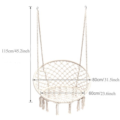 En optant pour cet article, vous bénéficierez d’une conception de qualité supérieure. Tricoté en corde de coton, une matière douce que la peau apprécie, il assure un confort optimisé. Il peut supporter un poids maximal de 120 kg et est muni d’un anneau de fer permettant de le fixer facilement. La robustesse et la résistance de cet élément garantissent une utilisation sûre. L’assise est de forme ronde et affiche un diamètre de 80 cm, une taille adaptée à une personne.