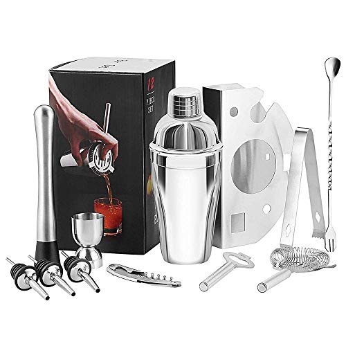 Figurant parmi les kits cocktails les plus abordables, ce produit de la marque U-Home est idéal pour vous préparer un mélange de 550 ml. Avec ses 904 g, il est principalement fait avec de l’acier inoxydable et possède une couleur argentée, lui procurant un aspect très classe. Il est livré avec plusieurs accessoires, dont un shaker avec une capacité de 550 ml, un mélangeur pour vos cocktails, une cuillère, une crépine, une pince pour la glace, un Jigger, un tire-bouchon… .