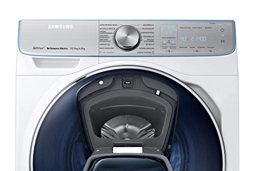 Le WD8800 WD10N84INOA/EG QuickDrive de Samsung fait 60 x 60 x 85 cm de dimensions pour un poids de 84.5 kilogrammes. Il est d’une taille très raisonnable, et trouvera facilement sa place dans votre buanderie. La machine peut supporter une charge allant jusqu’à 10 kg, vous permettant ainsi de laver une certaine quantité de linges sales en une seule fois.