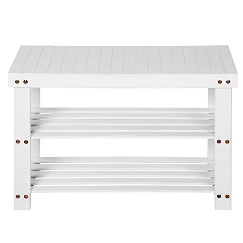 Si vous voulez absolument acheter un meuble à chaussures, ce modèle vous plaira. L’article comporte deux étagères pour ranger jusqu’à 8 paires de chaussures. Le banc supérieur peut servir pour accueillir d’autres affaires comme des sacs à main. Quoi qu’il en soit, ce meuble vestiaire peut trouver sa place dans la chambre ou la salle de bain pour ranger des livres, des magazines et des boîtes de rangement ou encore des serviettes de bain et des produits de toilette. Ce produit pas cher a une capacité de charge de 150 kg. Par ailleurs, le bambou résiste à l’humidité.
