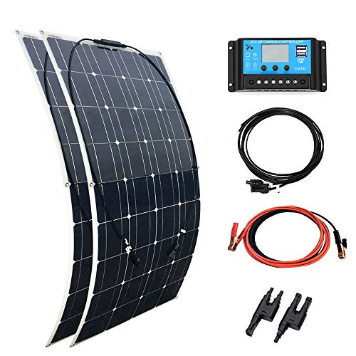 Accessoirement, ce kit comprend un contrôleur solaire de 20 Ampères, une boîte de dérivation, un connecteur typé MC4, des anneaux en acier inoxydable, deux câbles de type MC4 et deux autres qui sont équipés d’une pince crocodile. Même si ce pack n’est pas le moins cher du marché, il est quand même abordable.