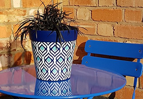 Arborant de jolies couleurs, le blanc et deux nuances de bleu, et orné de motifs originaux, ce modèle apportera la touche qui fera la différence pour animer votre extérieur. N’hésitez pas à accorder les couleurs des fleurs avec celles du pot pour créer une décoration harmonieuse.