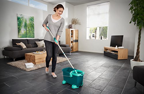 L’eau et la saleté seront essorées du balai grâce au mécanisme de rotation qui distingue Leifheit. De cette manière, vous n’aurez pas besoin de faire des efforts avec vos pieds ou de plonger vos mains dans le seau. La rotation s’active quand vous appuyez sur le manche.