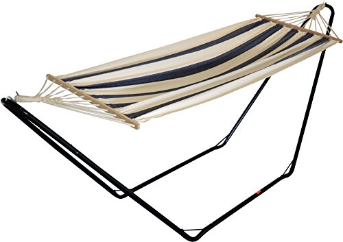Pouvant prétendre être le meilleur support de hamac du moment, ce petit bijou peut supporter une charge maximale de 100 kg. Ses dimensions sont parfaites pour que vous puissiez vous détendre à toute heure de la journée dans un confort total (300 cm x 72 cm x 110 cm).