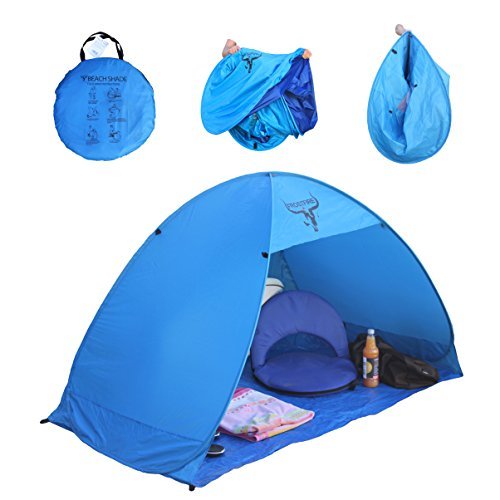 Pour pouvoir vous détendre à la plage tout en vous protégeant des rayons nocifs du soleil, vous pouvez investir dans une tente de plage. Ce dispositif très pratique peut avoir plusieurs formes et designs. Le modèle Frostfire a une dimension de 190 x 110 x 106 cm, ce qui lui permet d’abriter une personne en toute quiétude. La structure de cette tente est solide et robuste et assure la stabilité de la tente même s’il vente.
