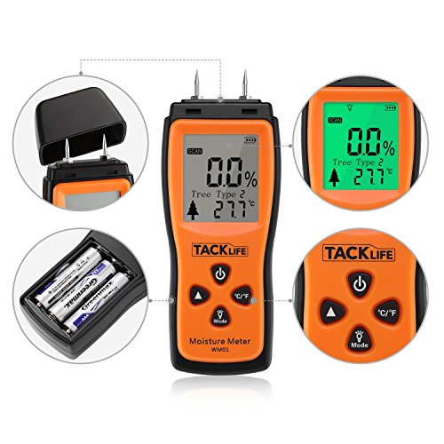 Avec cet article de Tacklife, vous aurez la possibilité de mesurer l’humidité du bois dans une plage de température de 0 à 40 °C. Les données recueillies présentent une marge de plus ou moins 1 % de la valeur réelle. Ne pesant que 126 g avec les 3 piles de types AAA incluses, il vous sera facile de le transporter pendant vos déplacements. Ce modèle est pourvu d’un large écran LCD rétroéclairé. Cette conception vous donne la possibilité d’une utilisation aisée même dans les endroits qui manquent cruellement de luminosité. Sur le moniteur, vous pourrez apercevoir les différentes informations concernant l’état de marche du dispositif. Pour ce qui est de ses fonctionnalités, vous pouvez compter sur l’option Hold qui vous permettra de mettre en suspens l’affichage ou le mode enregistrement des résultats. L’état des piles est également observable sur l’interface. Mais aussi, le Tacklife WM01-UK s’éteint automatiquement après 10 min d’inutilisation pour une économie d’énergie optimale.