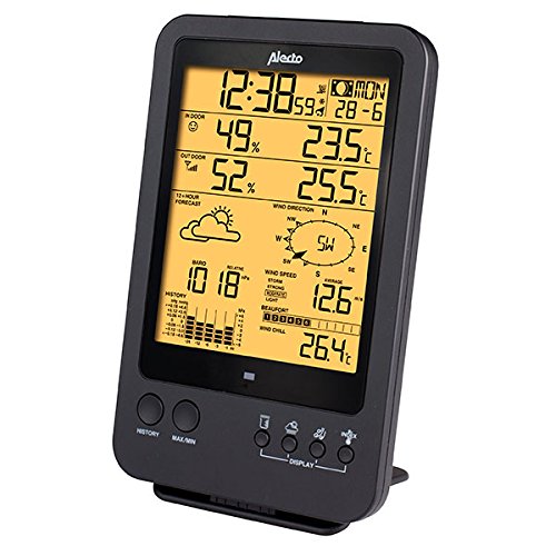 À savoir : température et hygrométrie intérieure et extérieure ; la direction du vent en 16 résolutions ; la pression atmosphérique. Il possède aussi un baromètre avec 5 icônes prévisions météo. Un anémomètre qui sert à mesurer la pression du vent et sa vitesse. Ainsi qu’un pluviomètre qui détermine la quantité de précipitations pendant un temps donné. Muni d’un écran avec couleur très agréable, il fournit avec exactitude des informations reçues par le capteur.