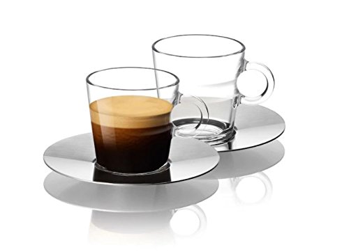 Les Nespresso lungo glass glass sont faits en verre d’une élégance inouïe. Il est facile de distinguer ce modèle des autres dès le premier coup d’œil. Ces tasses en verre reflètent une image somptueuse de la crème de Nespresso lorsque celui-ci y est versé. Les soucoupes quant à elles sont composées d’acier inoxydable. Elles sont résistantes au lave-vaisselle.